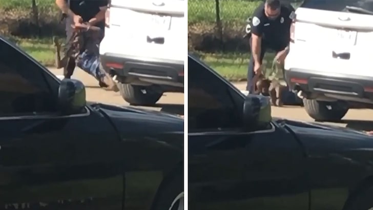 After a brief disappearance behind a parked car, the office re-emerged and began slamming Arnold into the concrete while holding on to her by her braids.