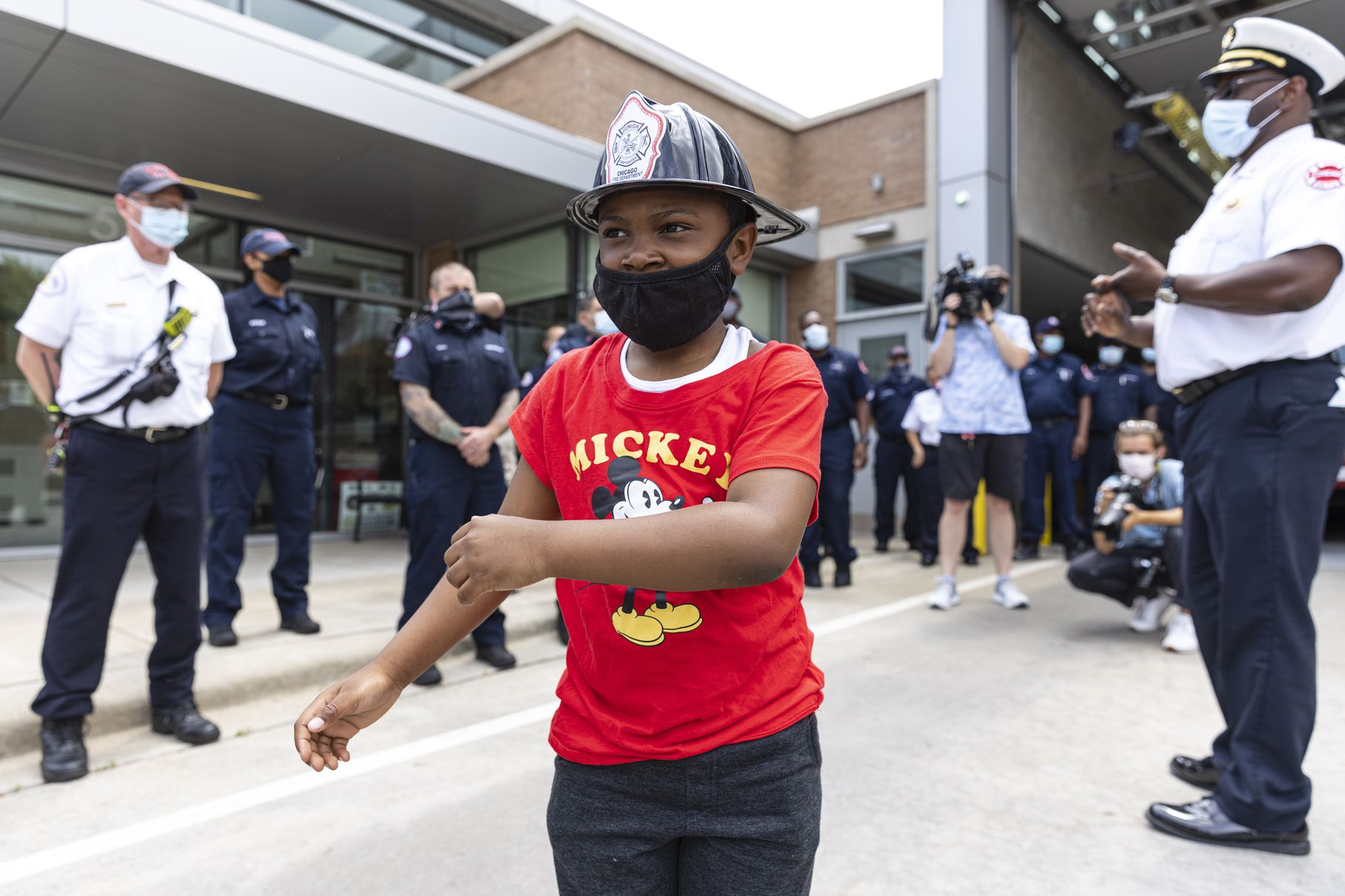 He also was gifted a plastic fire helmet, a backpack from acting CFD Commissioner Annette Nance-Holt, and a Lego fire truck.