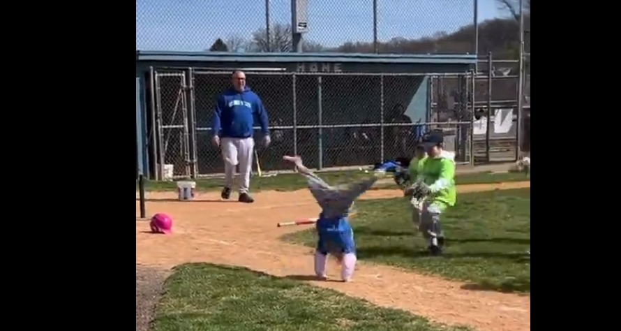 A New Jersey girl went viral for performing a cartwheel while running to first base during her little league game ...